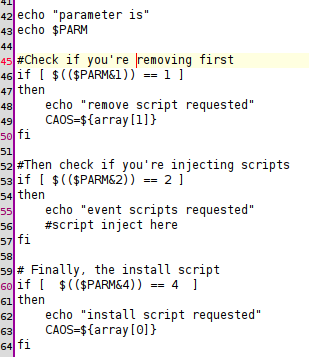Additionally, bash syntax hasn’t clicked with me at all yet. Sometimes spaces matter a lot. Sometimes a line with a space and a line without a space mean completely different things. Sometimes “=” and “==” do the exact same thing. Because bash is basically just a linking together of thousands of little programs, there’s almost no standardization as far as I can tell. But after over an hour of fiddling and searching and trial and error, I managed something that was… at least functioning: