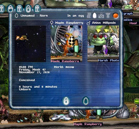 Kind of on a whim today I put together an update that lets you right click eggs while in help mode to bring up its history, just like you can with creatures. Combined with Zzzzoot’s Creature History Update, it’s a quick way to tell who the parents of an egg are without waiting for it to hatch.